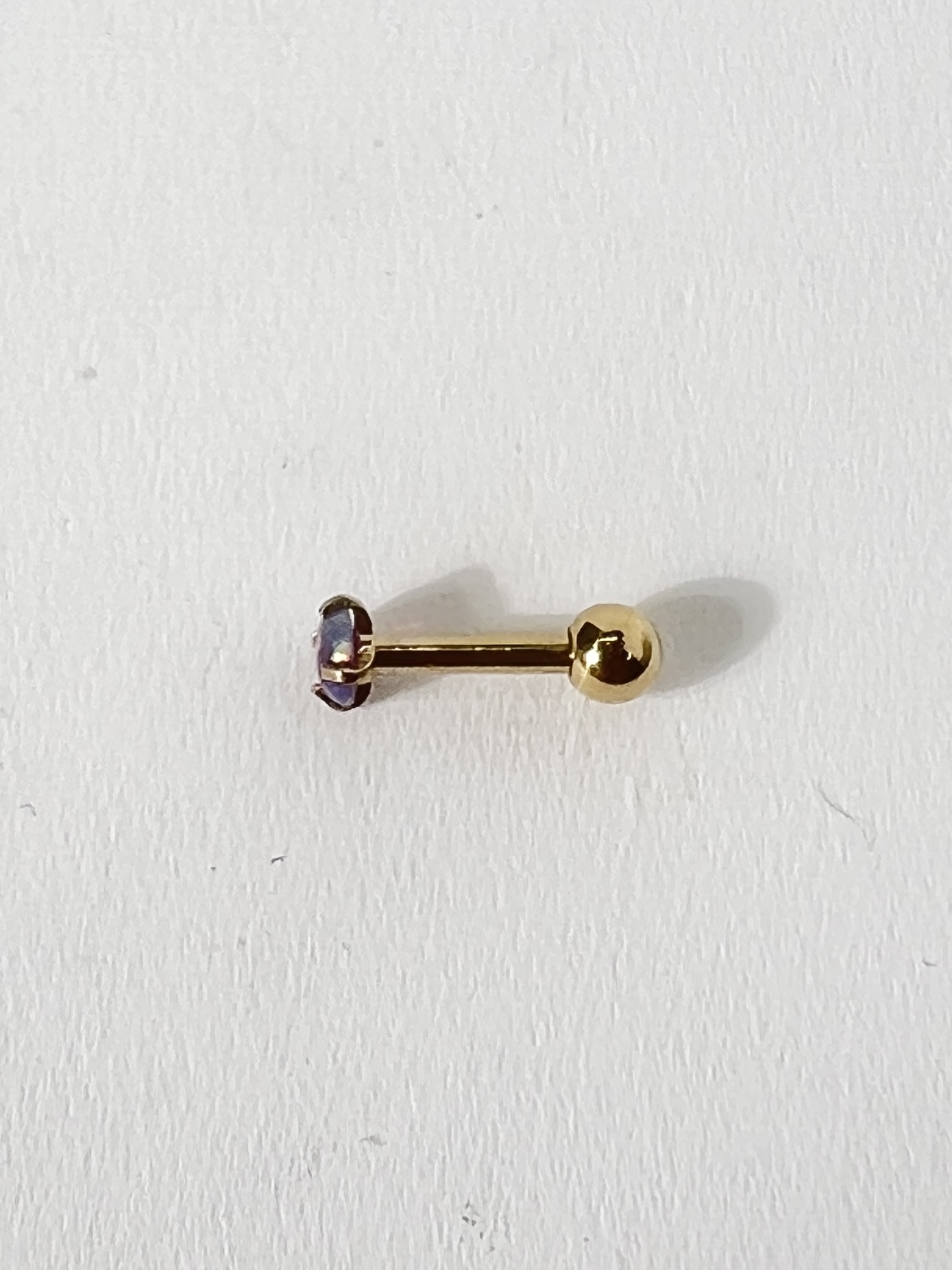 16G オーロラカラーストーンストレートバーベルボディピアス(パープル)
