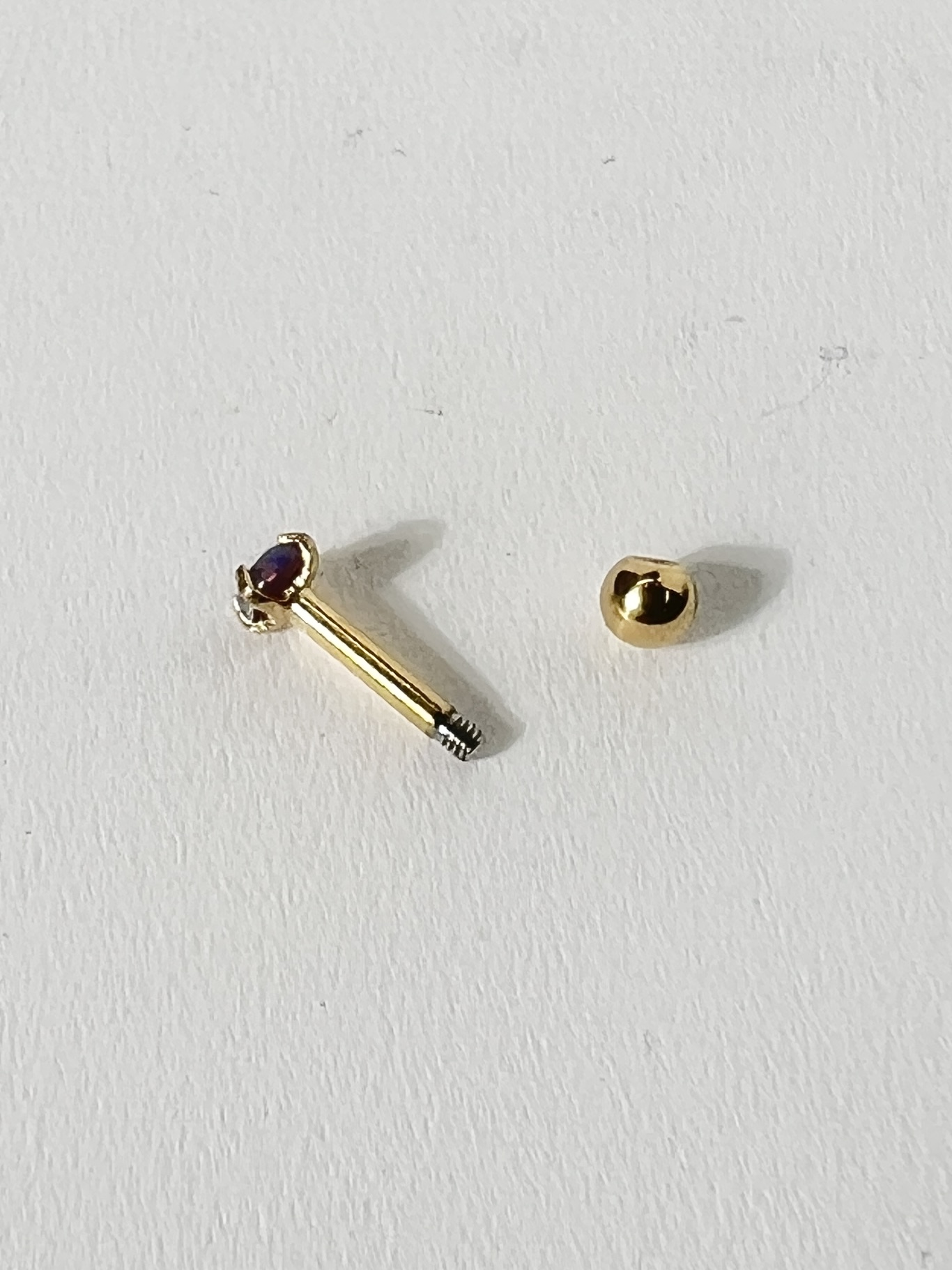 おしゃれを楽しむあなたにぴったりのこのボディピアスをぜひお試しいただき、あなたのスタイルにパープルのオーロラストーンの魅惑的な輝きを加えてみてはいかがでしょうか?