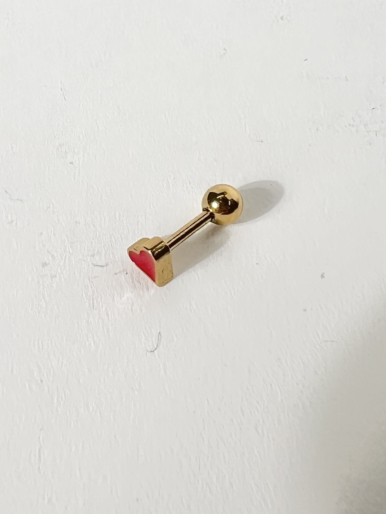 華やかなゴールドと鮮やかなレッドが魅力の、16G ポップハートストレートバーベルボディピアスが新たに登場です!
