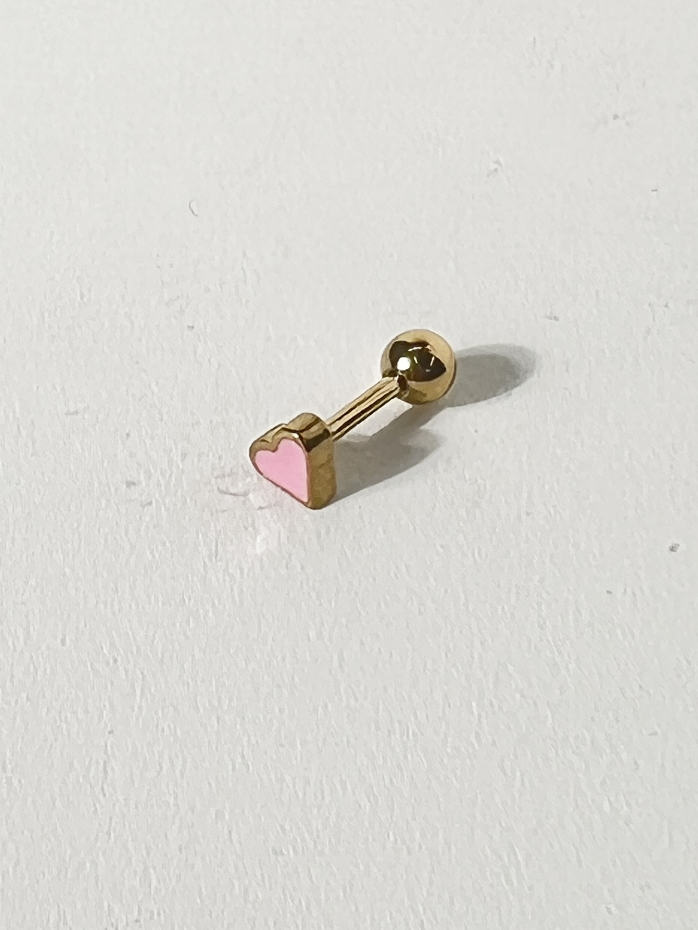 華やかなゴールドと愛らしいピンクが魅力の、16G ポップハートストレートバーベルボディピアスが新たに登場です!