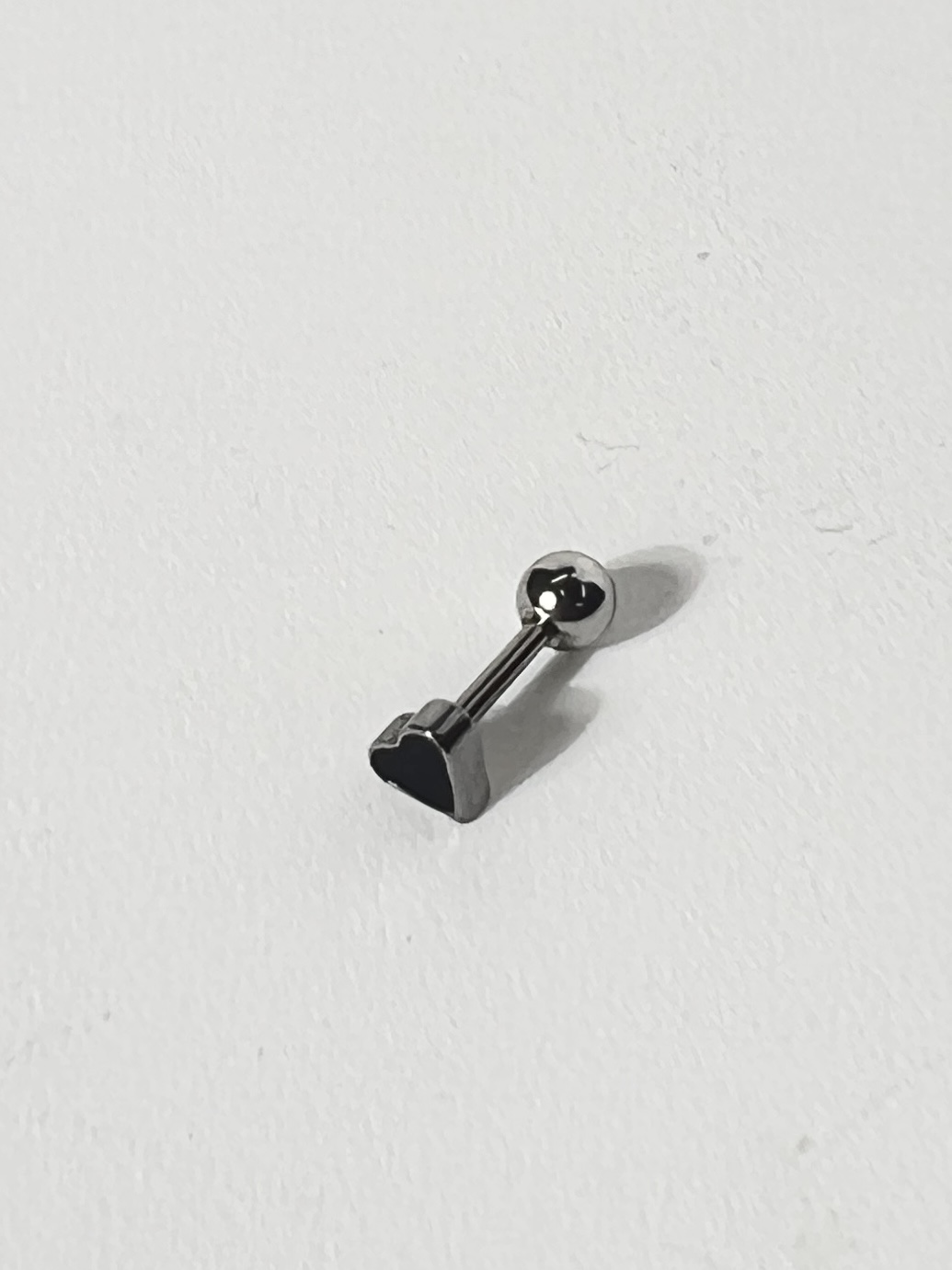 シルバーとブラックのコントラストが美しい、16G ポップハートストレートバーベルボディピアスが新登場です!